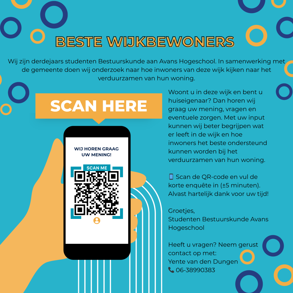 Het invullen van de enquête duurt ongeveer 5 minuten. U kunt deelnemen door de QR-code op de flyer te scannen.